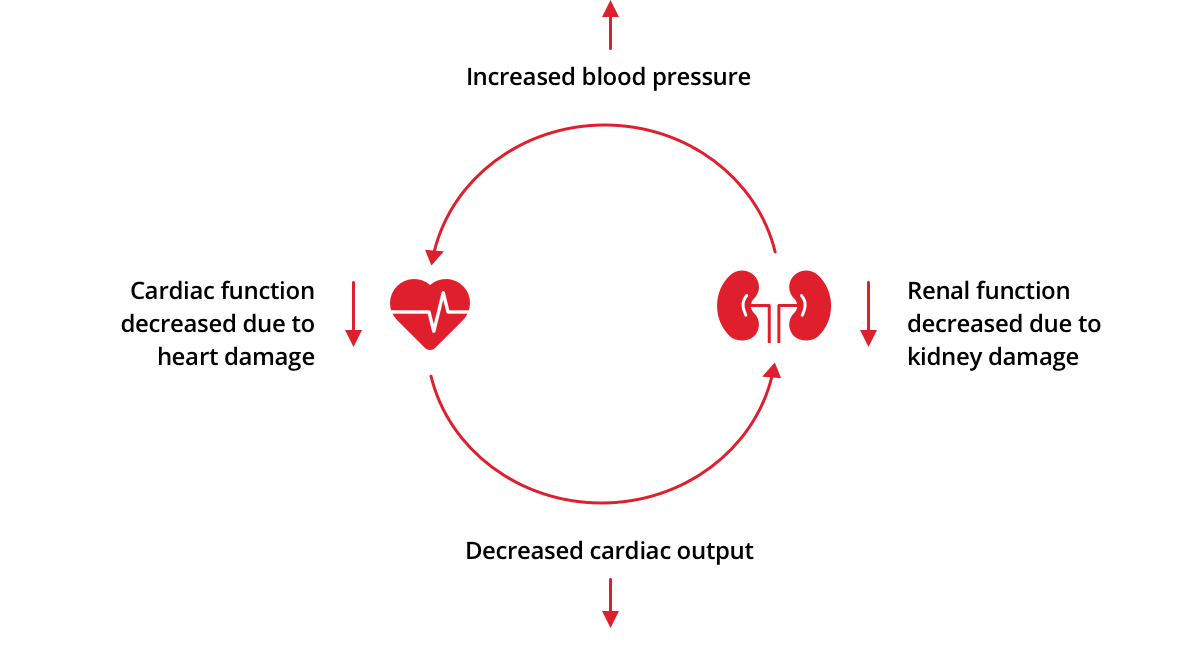 Primary disorders of the heart or kidney often result in secondary dysfunction or injury to the other.