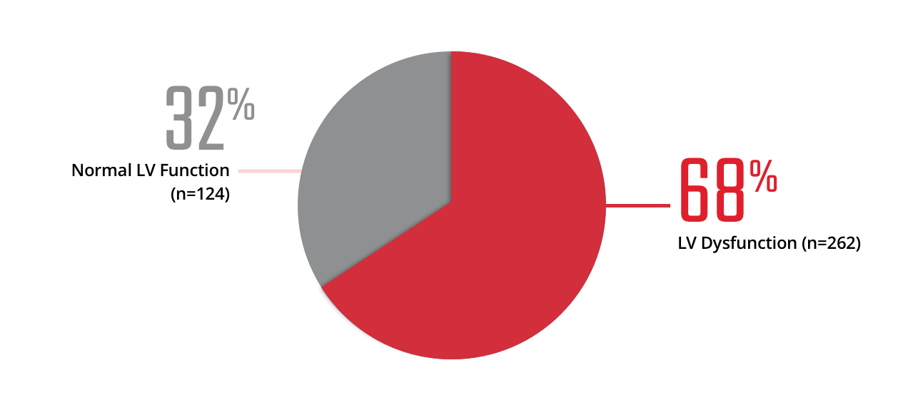 In fact, 68% of patients with T2D showed signs of left ventricular (LV) dysfunction within just five years of diabetes diagnosis in the absence of inducible ischemia.6†